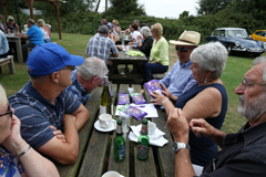 The Barbeque was declared open, and members lined-up to collect their portions, which were as usual, generous and well-cooked. Having eaten lunch, everybody relaxed in the sunshine and took the opportunity for more refreshments, or to look at the cars in more detail. Earnest discussions about what was under the bonnet, soon took place!