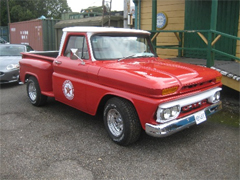 The breakfast meet itself attracted around forty vehicles of various makes and ages all parked up in the main hardstanding station carpark and, as is the case with most of our events, some vehicles had not attended a SCS meet before. One "new" vehicle, and "literally" the standout one on display for me, was a magnificent GMC pickup. (See Photo on the right)